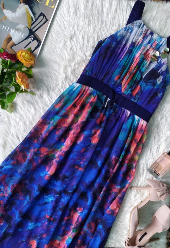 Довге шикарне плаття шифонова сукня в принт звирвзом на талії розмір XL від Little Mistress В дуже гарному стані, є ньанс, вказала на фото Тканина поліестер 100%, підкладка 97% поліестер, 3% еластан 🏷️ Напівоб'єм грудей до 58 см Напівоб'єм талії до 45 см Напівоб'єм стегон до 65 см Довжина 165 см
