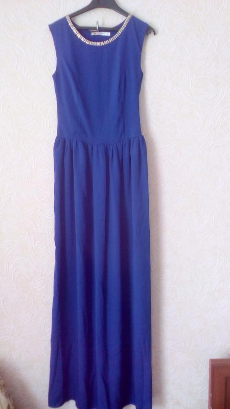 Красивое платье синего цвета, размер 42-44. Подходит на рост 175 см. Пояс в комплекте. Торг!