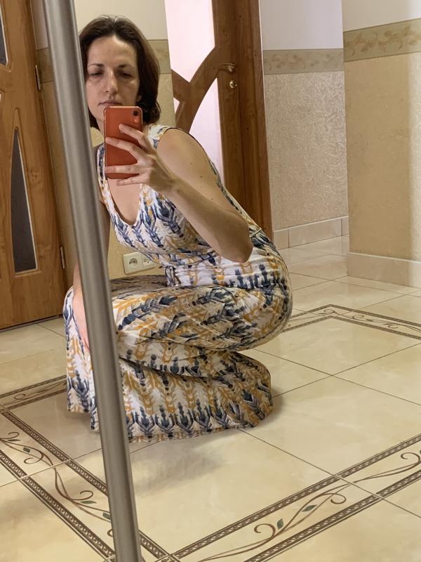 Довге плаття з приємним принтом. бавовна 100%. розширюється до низу, ходити зручно) НМ розмір S, але більшомірить на повноцінну М зріст на фото 178