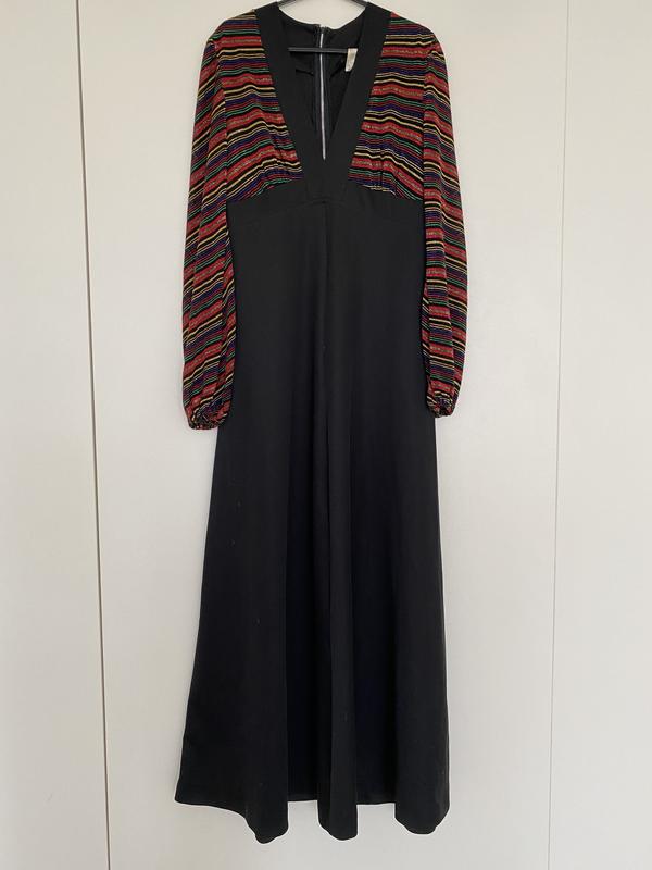 Вінтажна сукня 70х, в ідеальному стані. Ідеально підійде на розмір М. Гарні рукава з блискучими золотими смужками.