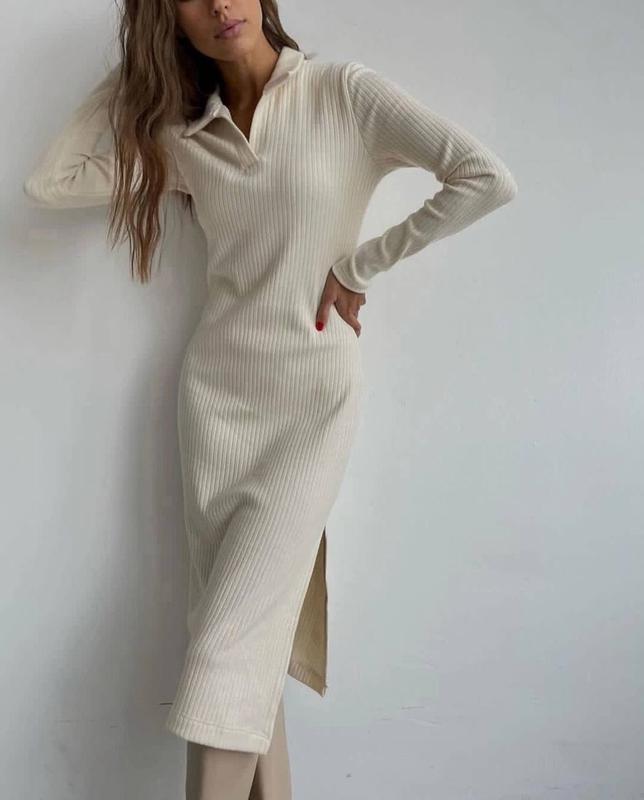 Мод. 950 Платье ✔Размеры - 42-44, 44-46 ✔Ткань - Трикотаж Рубчик Мустанг Цвета: светлый беж, черный