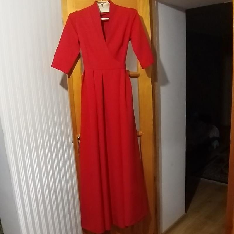 шикарна довга сукня червоного кольору. Розмір 38. Заміри: ПОГ 45, плечі 38, довжина 1.46, довжина рукава 36, ПОТ будьякий, регулюється запахом.