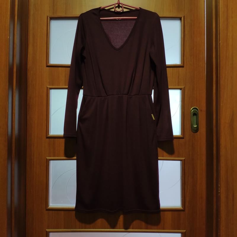 Платье трикотажное, приятное к телу, по талии резинка 35 см в свободном состоянии, растягивается до 40 см. Длина 100 см. Красивый V образный вырез. Цвет вообще бомба, с карманами.