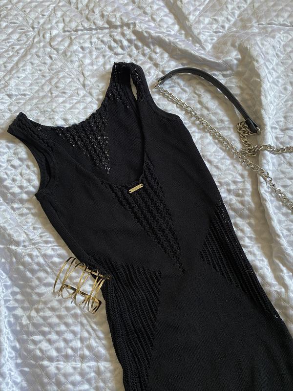 Вязанное Платье сидит по фигуре, по-этому красиво её подчеркнет.