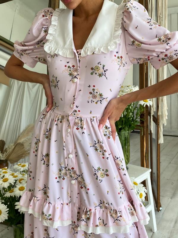 Арт 452 Сукня Kolibri Найкрасивіша та стильна сукня Акуратний комір, струменева тканина Довжина міді, підкреслить вашу ніжність та жіночність Розмір: S, M Кольори: рожевий, дрібні квіти на чорному, блакитний