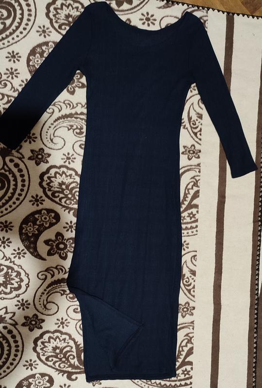 Синє довге плаття з розміром на ножці.