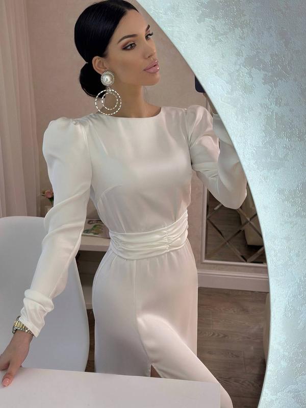 Сукня "Аврора" ✅матеріал - щільний італійський шовк-сатин lux якість ✅опис моделі - сукня з V-образним вирізом на спинці, спереду розріз, пояс в комплекті ✅розміри 42, 44 ✅кольори моделі - малина, молоко, капучіно (✔️ під замовлення можна 40 46 48 50 52 розміри, чекати 2-6 дні, +200)