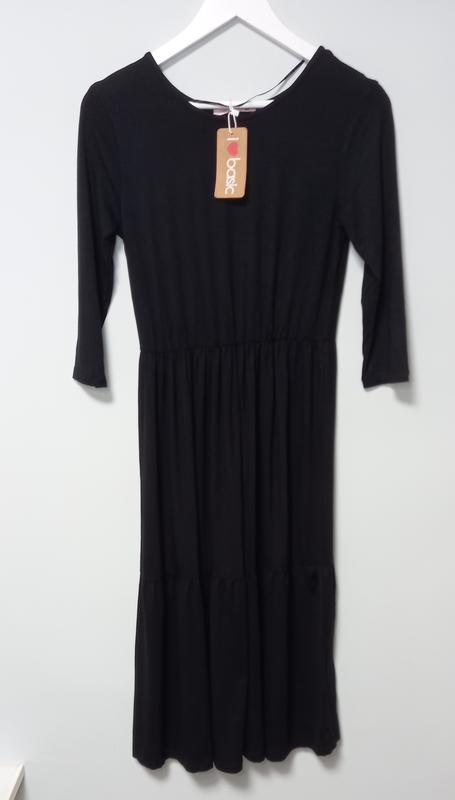 Сукня з руковами 3/4, та широкою юбкою. на талії гумка Склад: 96% віскоза, 4% еластан Розмір М довжина сукні 111см довжина рукова 42см бюст ( об'єм) 84см талія(об'єм) , гумка рослаблена 65см
