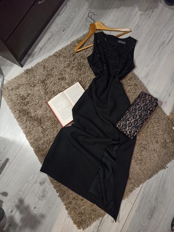 Класична довга чорна сукня з розрізом