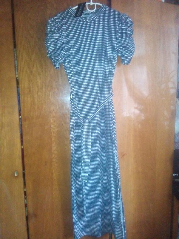 сукня нова з картонною біркою,є поясок, розріз з боку на ніжці, довга, гусяча лапка