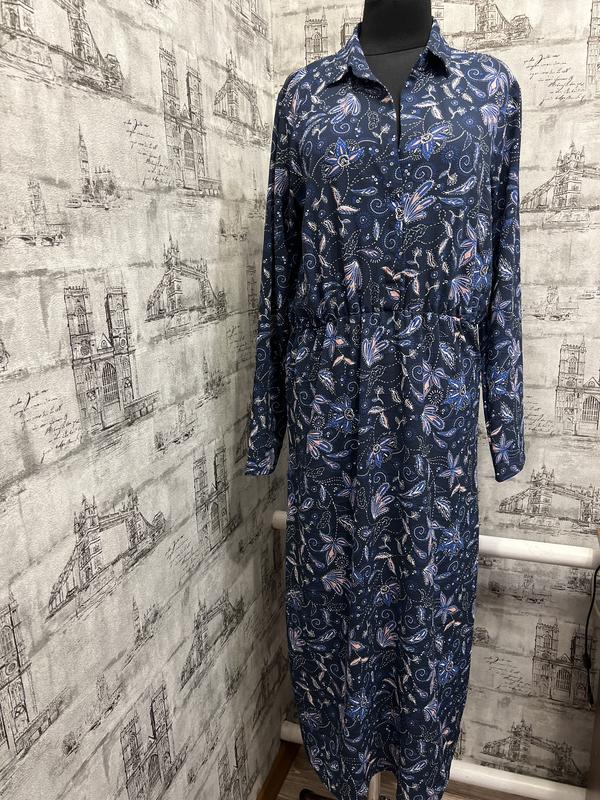 Синє плаття довге з рожевими квітками
