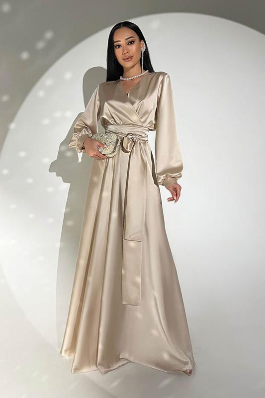 Ткань: шелк "Армани" Состав: 60% полиэстер, 38% вискоза, 2% эластан Цвет: белый, черный, беж, темно-синий Размер: S, M, L, XL Параметры модели на фото Зріст: 170 см, ОГ: 86 см, ОТ: 64 см, ОС: 93 см. На фото представлена модель размер S (42/44). Фактические замеры изделия Объем груди: S - 92 см, M - 96 см, L-100 см, XL - 104 см Объем талии: S – 60 см, M – 64 см, L-68 см, XL – 72 см Длина изделия: S - 157 см, M - 157 см, L - 157 см, XL - 157 см Длина рукава: S - 61 см, M - 61 см, L-61 см, XL - 61 см По талии резинка) ● Рукав: длинный, втачной, на манжете ● Застежка: запах ● Воротник (горловина): V - подобный ● Карманы: - ● Декоративные элементы: пояс в комплекте Непревзойденное вечернее платье из нежного шелка «Армани» покорит Вас с первого взгляда. Дизайнерское решение воротник-шаль придает изделию особую роскошь.