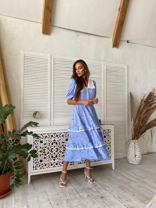 Арт 452 Сукня Kolibri Найкрасивіша та стильна сукня Акуратний комір, струменева тканина Довжина міді, підкреслить вашу ніжність та жіночність Розмір: S, M Кольори: рожевий, дрібні квіти на чорному, блакитний