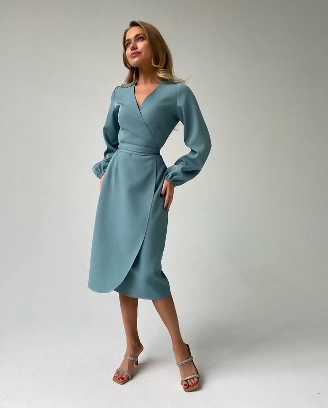 Артикул: 543-416 Колір: пудра, молочний , лаванда, зелений, блакитний, темна бірюза Розмір: 42-46 Матеріал: костюмка Сукня йде на запах Довжина 113 см