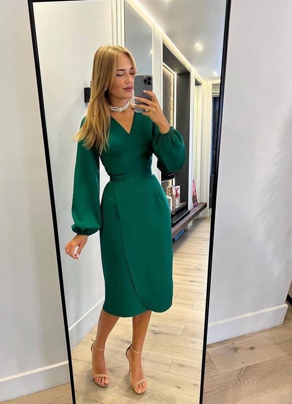 Артикул: 543-416 Колір: пудра, молочний , лаванда, зелений, блакитний, темна бірюза Розмір: 42-46 Матеріал: костюмка Сукня йде на запах Довжина 113 см Не продаю безпечною оплатою!