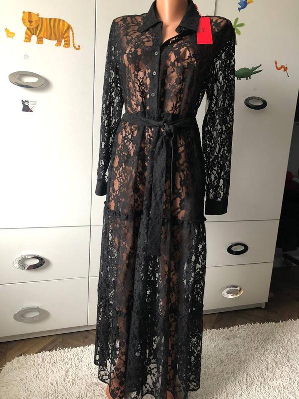 Черное кружевное платье рубашка с поясом Hugo Boss. Цена 4500 грн.