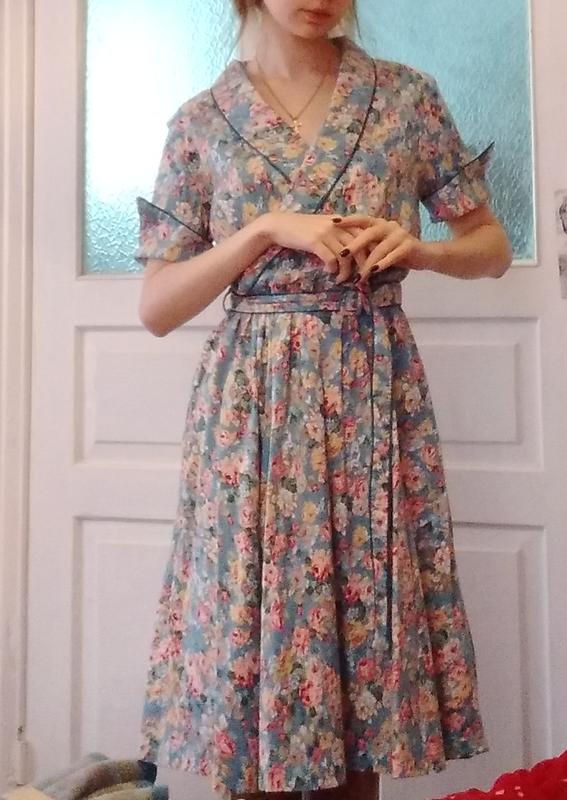 Вінтажна сукня з пояском, блакитна в квітковий принт . довжина 115см. добре тягнеться тому підійде від S до XXL. стан іднальний Вдягнуто на зріст 172см. та параметри 80,60,88. Доставка Укр. та Новою поштами за ваш рахунок. Звільняю шафу. У профілі ще багато сукеньок на будь який смак ;)