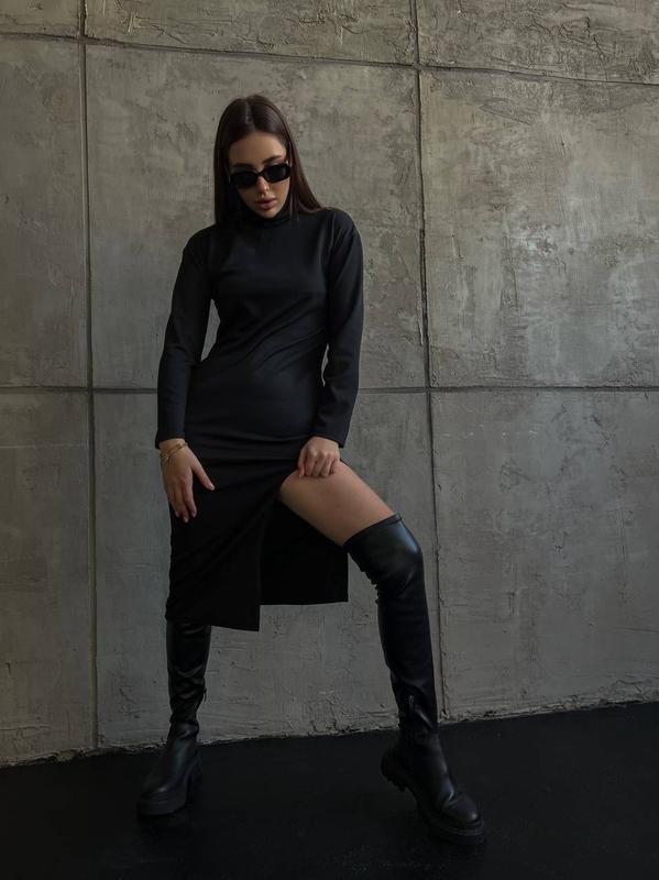 💥 Реал фото💥 Сукня ▪️Модель 004 ▫️Ткань: плотный рубчик ▪️Цвет: черный ▫️Размер : 42/46 48/50 🌿 Платье из плотного рубчика с разрезом по ноге свободного кроя - это аутфит, чтобы стильно пережить холодный сезон 🌿