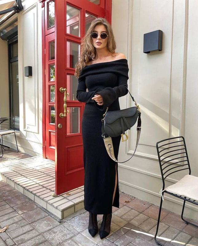 Удивительное платье🖤😍 Тканина : мустанг Размеры :42-44;46-48 Цвет: черный Стильное черное платье с разрезами на рукавах и на ноге. Фасон платья подчеркивает фигуру, а открытые плечи добавляют романтичности в образ 🤍 наложен платеж с подпиской 200 грн. 🤍обмен/возврат 🤍 отправка 1-3 дня
