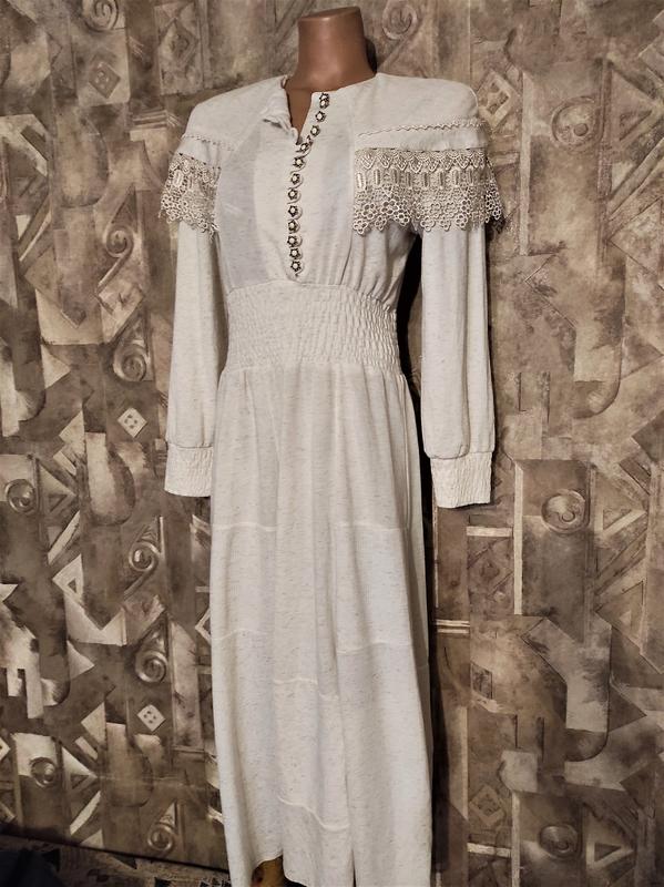 длина - 130см ПОГ - 47см, ПОТ - 38-48см ПОБ - 72см, ПО низа - 138см длина рукав от горловины - 75см, ПО манжета - 11см высота от плеча вниз до верхнего шва пояса - 35см высота пояса - 11см, бирка с составом обрезана. думаю 50% катон, 50% полиэстер есть небольшой нюанс, зацепка, 2 фото снаружи и внутри, незаметно в складках платья Прежде чем делать заказ, уточняем наличие и сроки возможности отправки товара