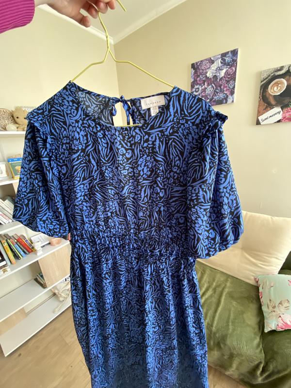 продам платье с открытой спиной очень красивого синего цвета с цветочным принтом