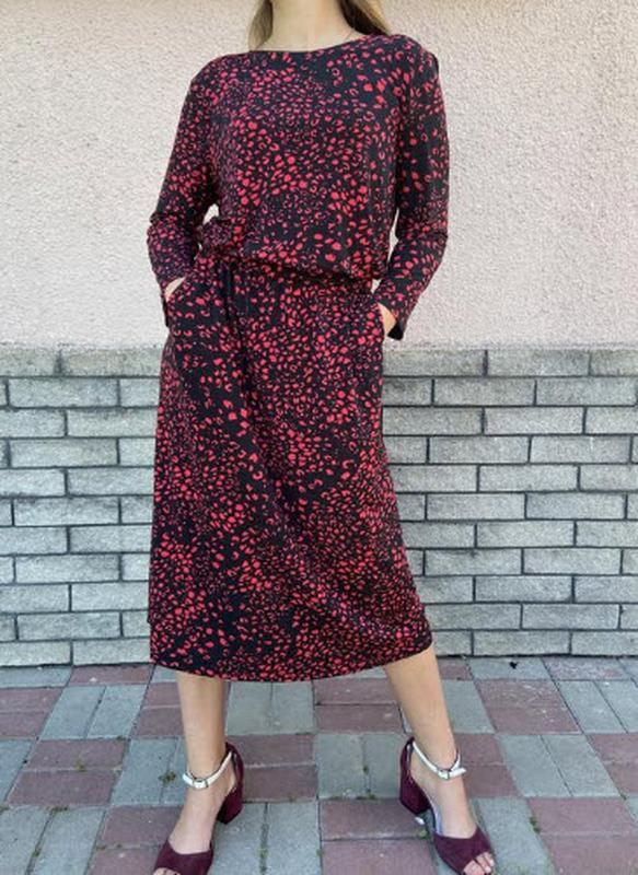 Платье из полиэстера с анималистичным принтом. На талии комфортная эластичная резинка, есть 2 кармана. Ткань хорошо растягивается.
