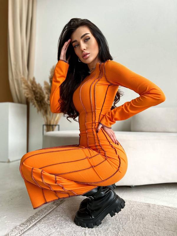 Фото реал Сукня Тканина - рубчик Размеры - 42-44 и 44-46 Кольори - чорний, оранж, сірий Это платье точно станет твоим любимым😍 Яркие швы, длина миди, и плотная ткань, которая моделирует фигуру 🥰