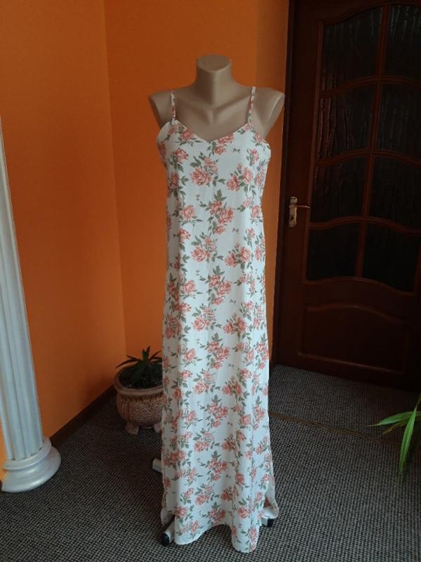 красивое длинное платье на бретелях, пог 45, по бок 52, длина 140, разрезы по бокам высотой 43 см, подкладка не до конца,а примерно до колен