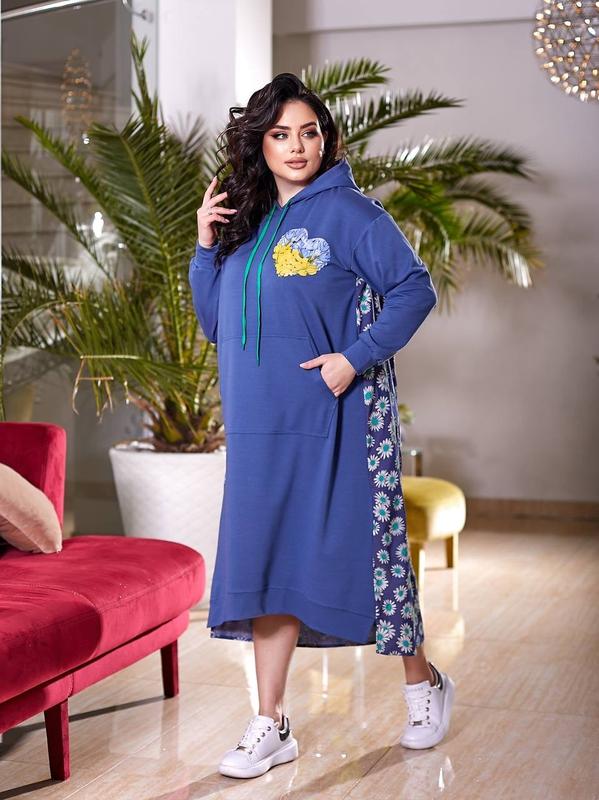🔥🔥🔥Платье 🔥🔥🔥1221.48-50,52-54,56-58,60-62,64-66.Ткань двухнитка с джинсом.Цена 830 гр