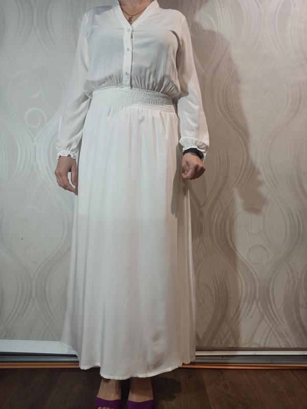 Платье новое, без бумажной бирки.Гузики расстегиваются, сбоку разрез.Талия на резинке.Ткань штапель. Замеры: Плечи 42 см ПОГ 55 см ПОТ 30 см (тянется до 44 см) ПОБ свободно Длина 160 см. Длина рукава 62 см Стан идеален без нюансов