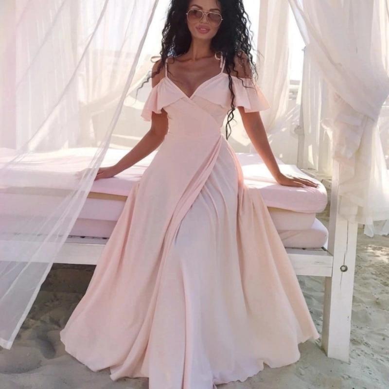 Сукня на запах Модель 199 НОРМА Новая цена 495 грн. Легкое нарядное платье в пол Фасон «На запах», юбка клеш Тонкие бретели на завязках с открытыми плечами и рукавами-крылышками на резинке Ткань: софт Размер: универсальный 42-46 Цвет: однотонный цвет код1955(дар)