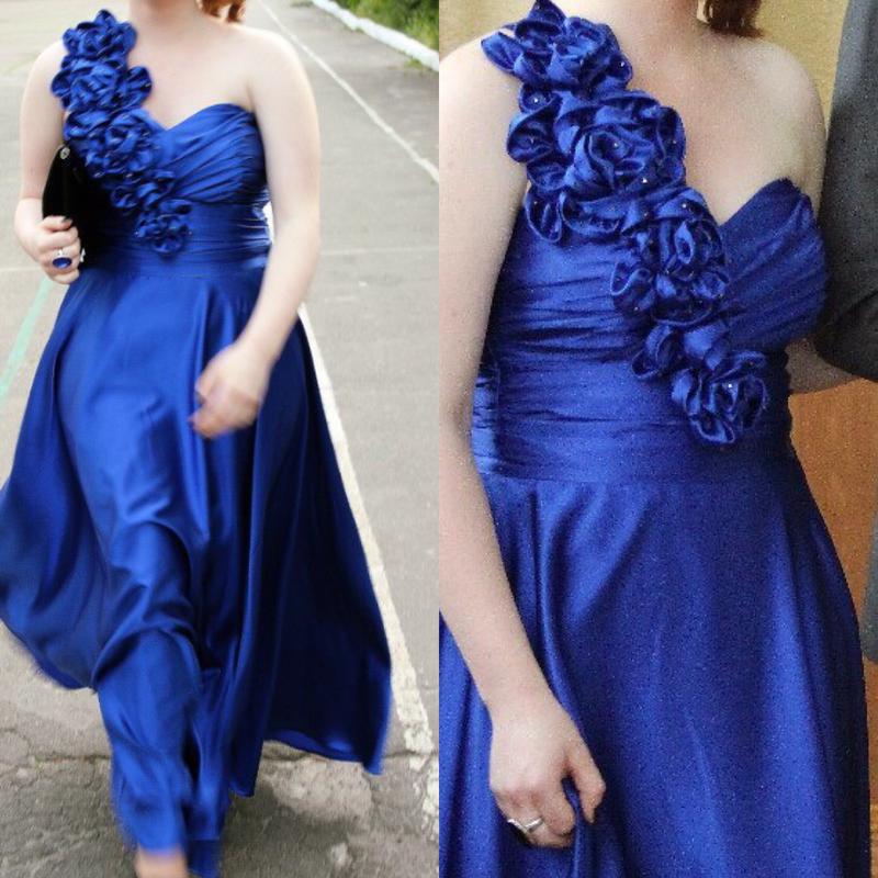 Платье в пол синего цвета из атласа с цветами . Пошив был на заказ!Одевалось 1 раз на выпускной , верхняя юбка снимается , под ней юбка карандаш до колена . Замеры и фото в личные сообщения !
