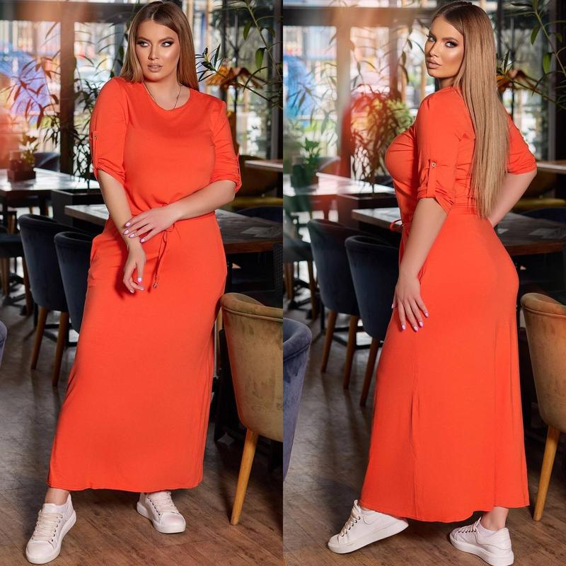 ✨Сукня довга Розпродаж ✨Модель №р1366 ✨ ✨Розмір:46-48 ✨Тканина:віскоза турецька(легка и приємна) ✨Колір:оранж,малиновий,зелений ✨Тягнеться до 10 см Заміри: Розмір 46-48 ог-106,от-90,ос-110,довжина-140,рукав-49
