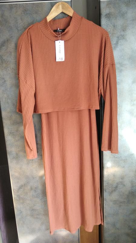 платье 2в1 и укороченная кофточка в рубчик с разрезом на левую ножку