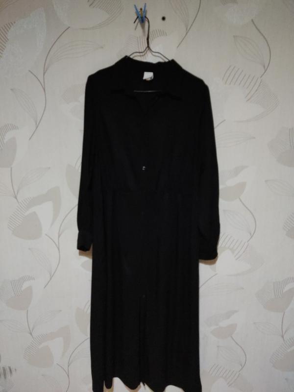 Женское, брендовое платье в стиле халат. Застегивается на пуговицы спереди. По бокам имеет карманы.