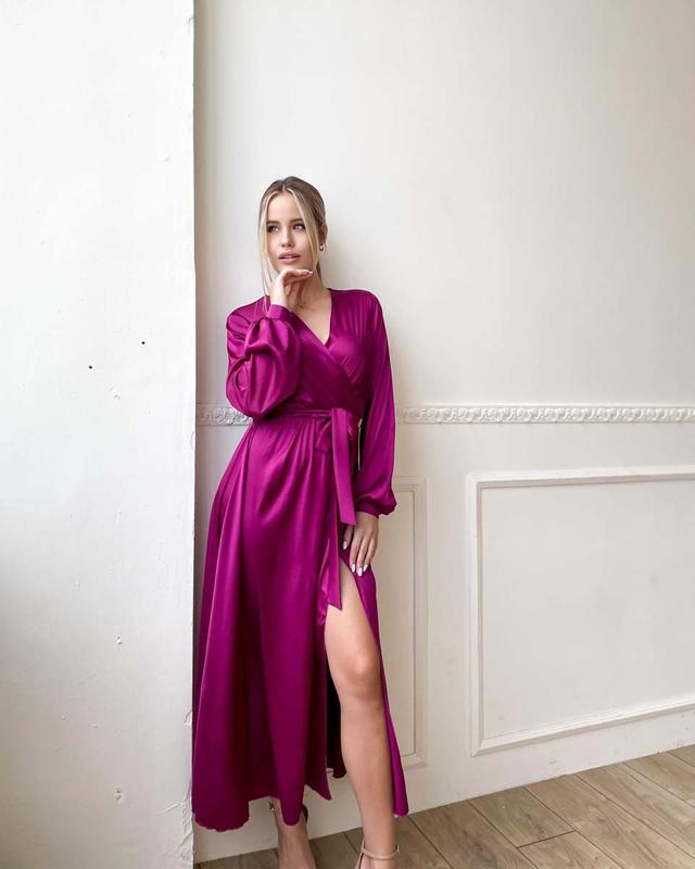 Шелковое платье миди с разрезом на ноге Размер: one size Материал: шелк армани Цена: 1290грн Ber