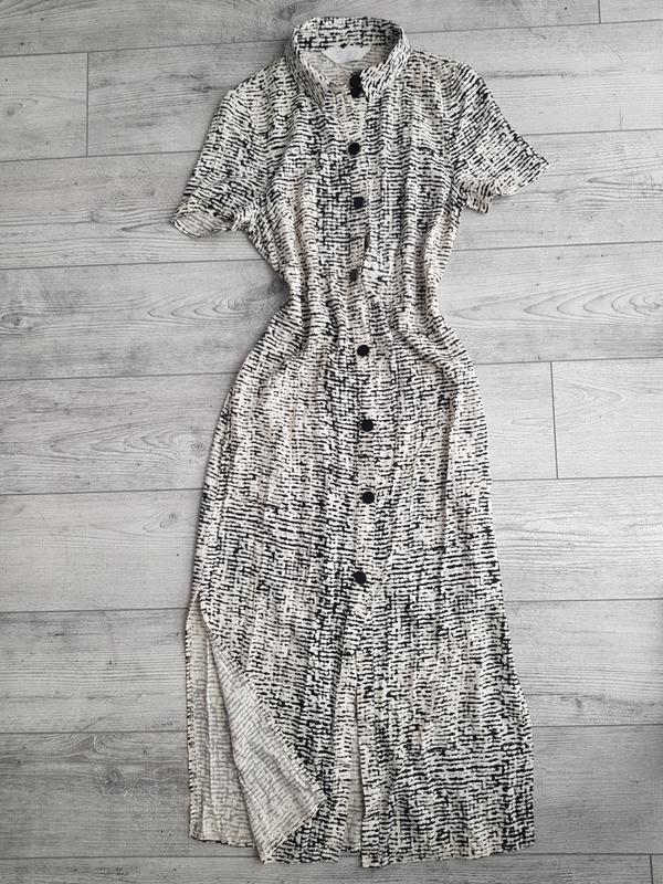 стильное платье рубашка миди с акцентированными пуговицами и разрезами по бокам 100% вискоза Стильно смотрится как с пояском так и без ответвлютая длинна 115см ПОГ 40см