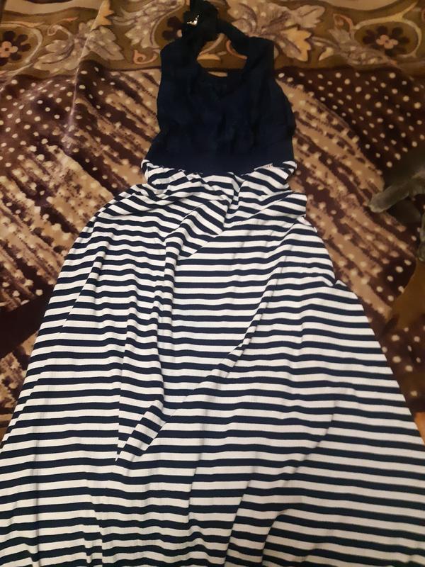 Платье длинное,очень красивое,ных трикотаж верх гипюр, сзади красиво на шее связан бант.ог45,от30 тянется до 40,длина 138