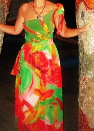 Платье сарафан макси на одно плече верх трикотаж низ шифон (светится) состояние идеальное только немного внизу надо подшить шилось на заказ