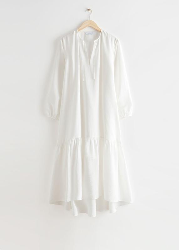 Объемное макси-платье & Other Stories с V-образным вырезом, многоярусным силуэтом и декольте с завязками. TENCEL ™ LYOCELL Длина платья: 139,8 см / 55 дюймов (ЕС 36 / Великобритания 10 / США 4) Основа: лиоцелл 87%, полиамид 13% Сухая чистка, Машинная стирка в холодной воде, деликатный цикл. В наличии размеры:34 ,38.
