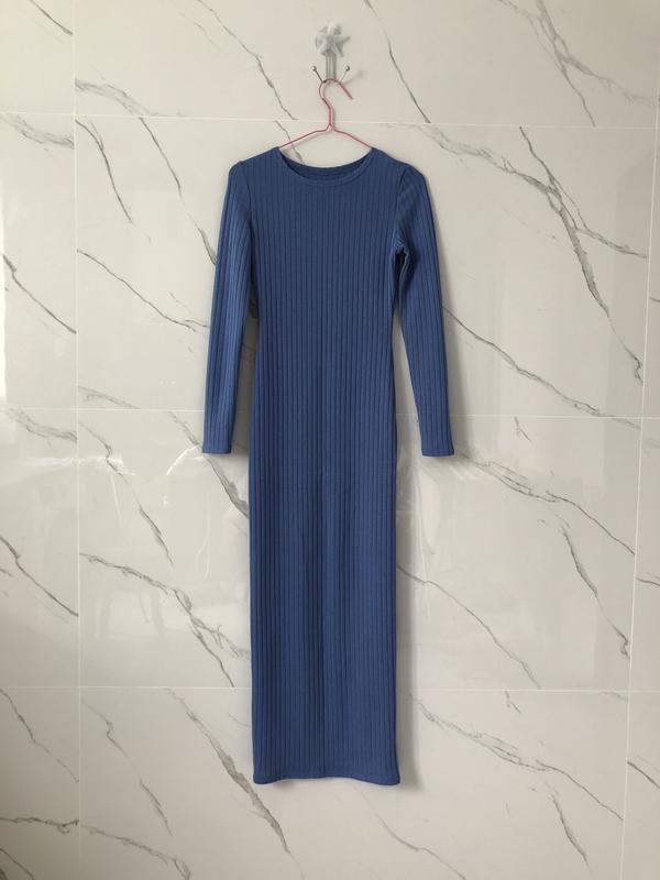 Платье насыщенного синего цвета в рубчик.