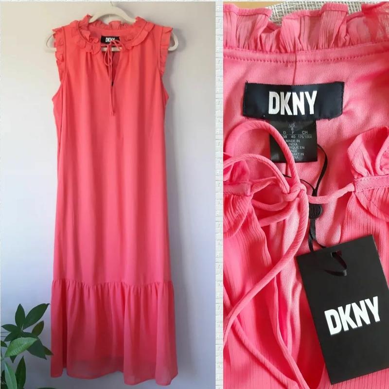 Яскрава шифонова сукня відомого бренда DKNY. Колір рожево-кораловий.