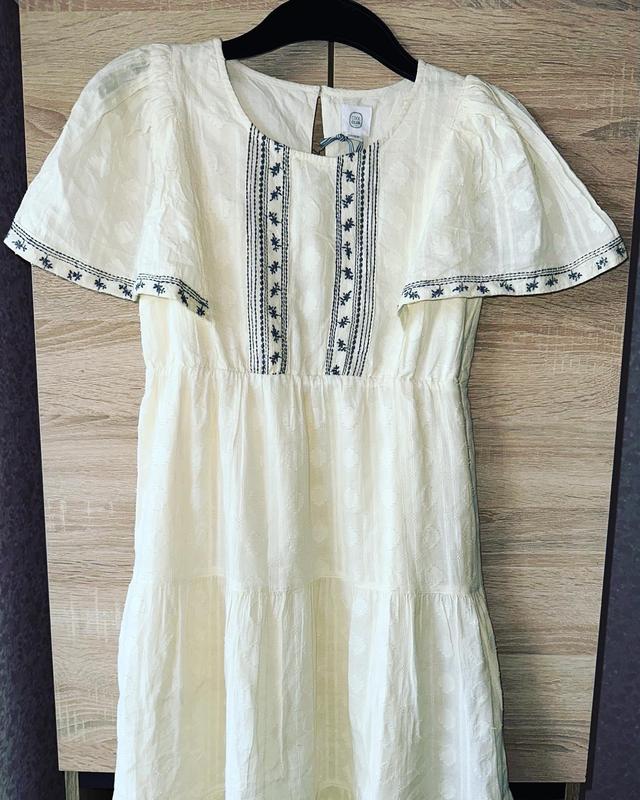 Платье невероятно красивое и легкое) Имеет красивую и актуальную украинскую вышивку Сам топ на лето )дихающая ткань) Имеет подюпник(не просвечивается) Тканина не тягнеться На размер хс (грудь до 82 см)