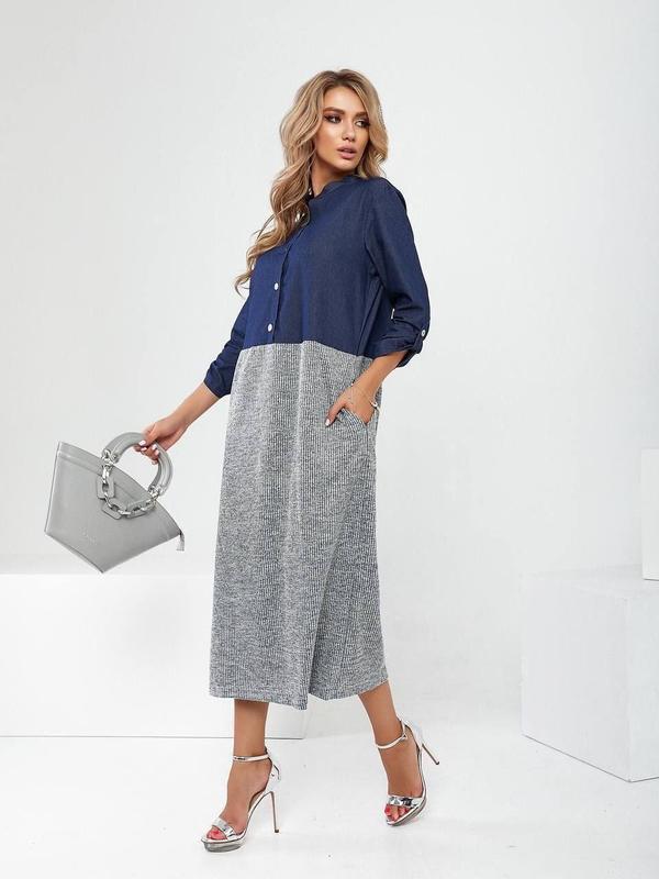Сукня Комбинация, Джинс+Трикотаж рубчик 🤍Размеры: 42-44; 46-48 Длина изделия: 120 см По бокам, врезные карманы Воротники стоечка, на пуговицах Рукав 3/4 рукав регулируется, с помощью планки на пуговице. Свободного кроя Замеры: 42-44 размер О/Г-102 см 46-48 размер О/Г-112 см 💸Цена: 590 грн