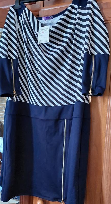 Платье платье полуприталенного силуэта от Gloria Romana. Длина платья 95см. Рукав получетвертых с застежкой.(длина рукава 41см). Вырез на платье "хомут", но не достаточно глубокий. Ширина по грудях 104см, ширина по бедрах 108см(тканина тягнеться)