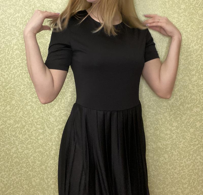 Базовое черное платье (юбка плиссе) Размер М Ткань очень хорошо тянется, поэтому даже маленькая L вполне может влезть Цвет:черный