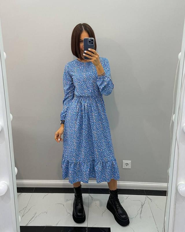 Новинка🤤🍁 Фото Реал! 📸 Платье Мод: ad 481 Размеры: 42-44,46-48, 50-52, Платье Идеального кроя 🤩 с завышенной талией на Резинке, рукав Длинный Фиксируется Резинкой! Ткань: софт Турция 🇹🇷 Цветочный Принт! Длинна Миди😍 Цвета: черный, Фрез,Голубой,оливка Супер Качество!!! Цена 690 грн 💥🔝
