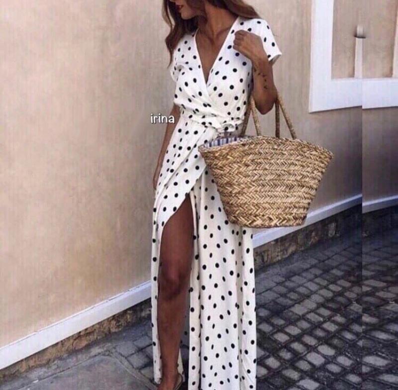Платье на запах, в горошек, длинное, с пышной юбкой, модное, нарядное, повседневное, до 48...