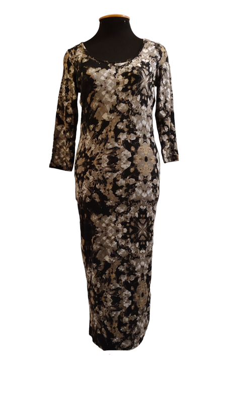 Платье из вискозного трикотажа. Крой по фигуре, к низу зауженная. ПОГ 46-54 см ПОТ 40-53 см ПОБ 47 -58 см Длина рукава 48 см Длина платья 123 см