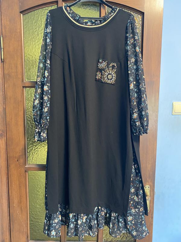Длина от пончика 113 см, пог 60 см, пост 66 см. Трикотаж с вставками шифона, рукав от плечика 62 см.